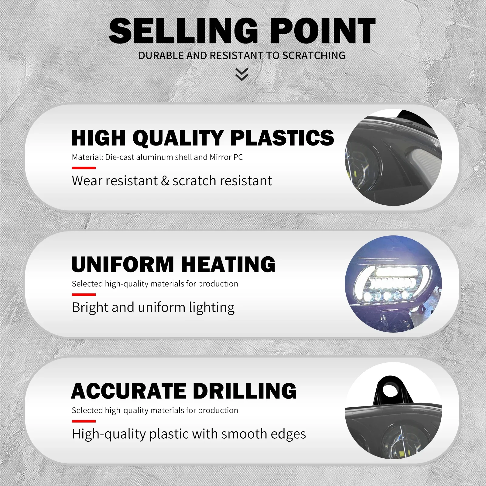 Be the first to review “Motorcycle Front LED Headlight High Low Beam Lamp Turn Signal Running Light For Harley Touring Road Glide FLTRX 15-20 Waterproof”