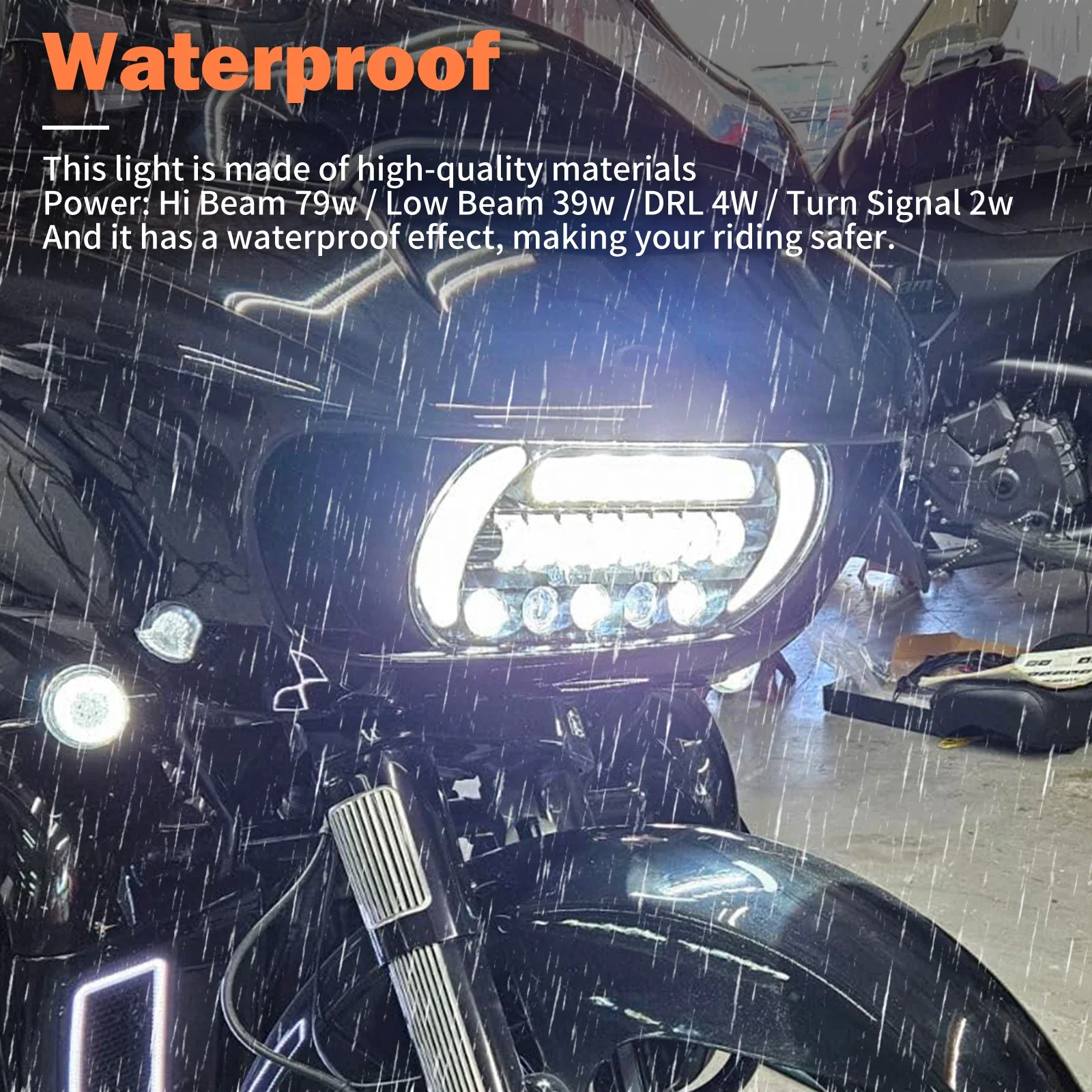 Motorcycle Front LED Headlight High Low Beam Lamp Turn Signal Running Light For Harley Touring Road Glide FLTRX 15-20 Waterproof